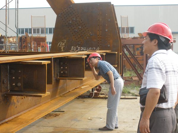 王元曦副总经理一行在听取安徽建机公司董事长、总经理张卫东关于生产经营情况汇报后,兴致勃勃地来到生产现场检察了火热的生产场景。王副总一行重点检察了该公司近期乐成研制的新产品PT7032塔机和钢结构生产线。当看到该公司现场制作拼装的巨大的钢结构桁架桥梁时,王副总很是兴奋,走上前来仔细地检察部件的焊接点,时时地询问生产和加工的细节情况,并向生产一线的职工致意亲切的问候。