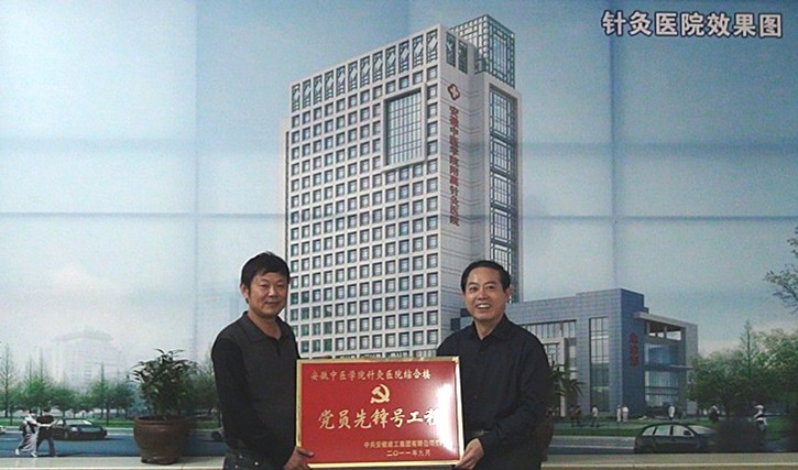 9月26日下午,集团公司党委副书记、副董事长李长斌,在集团党委事情部主任胡建英、海内公司总经理陈传文等相关人员的陪同下,到安徽中医学院隶属针灸医院综合病房大楼施工现场,为其项目争创集团公司“党员先锋号工程”授牌。