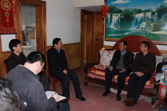 随后 ,方书记一行赶到全国劳模、安徽三建公司退休职工王平学家走访。他仔细询问了王平学的事情生活情况 ,得知王劳模退休后放弃了民营企业的高薪聘请 ,继续留在安徽三建发挥技术特长 ,还在新农村工程的小区建设中搞技术革新 ,他赞扬了这种对企业的忠诚和不绝立异的精神。