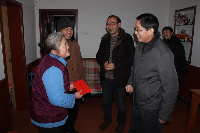 慰问刘劳模时,王总仔细询问了他的身体状况和家庭收入情况,当得知他在夜间看守自行车棚时,嘱咐他要注意保暖,警惕宁静防火;之后王总又来到困难党员王远玉的家,王远玉恋人身患严重风湿病,家庭经济很是困难,王总勉励她要增强信心,克服暂时的困难,并代表MG电子集团党委提前向他们及全家贺年 。