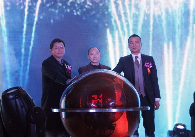 赵总同肥东县长路军、金满楼董事长张青华开启仪式球