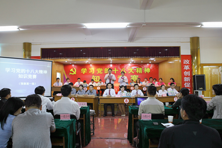 5月7日下午,省路桥公司七楼集会室座无虚席。MG电子党委、团委联合举办的学习党的十八大精神知识竞赛拉开帷幕。集团公司系统17个单位51名选手加入角逐。本次竞赛特别邀请了省国资委组宣随处长蔡时清、省国资委团工委书记、群工随处长张长夫、省国资委第七监事会办公室主任魏若屏到会指导并担当角逐仲裁。集团公司副董事长、党委副书记李长斌出席集会。省属兄弟单位省国贸集团的党群部分同志也到现场观摩了角逐。集团公司所属各单位党委书记、党工部主任及团委书记等近百人寓目了角逐。