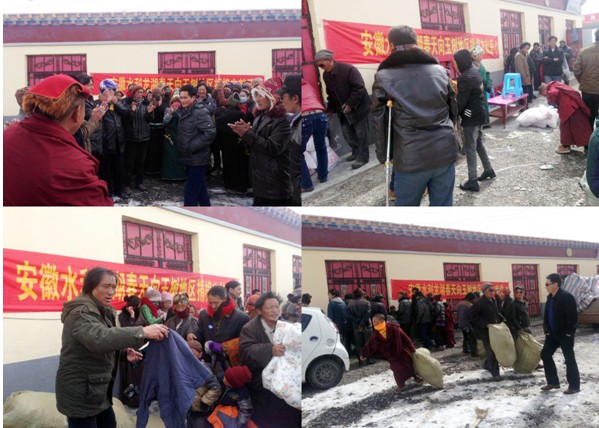 今年1月17日 ,安徽水利清越龙湖春天组织项目职工、小区物业、居委会、小区业主、周边大学学生 ,向青海省玉树藏族自治州称多县贫困家庭及儿童捐棉衣等过冬物品200多公斤。