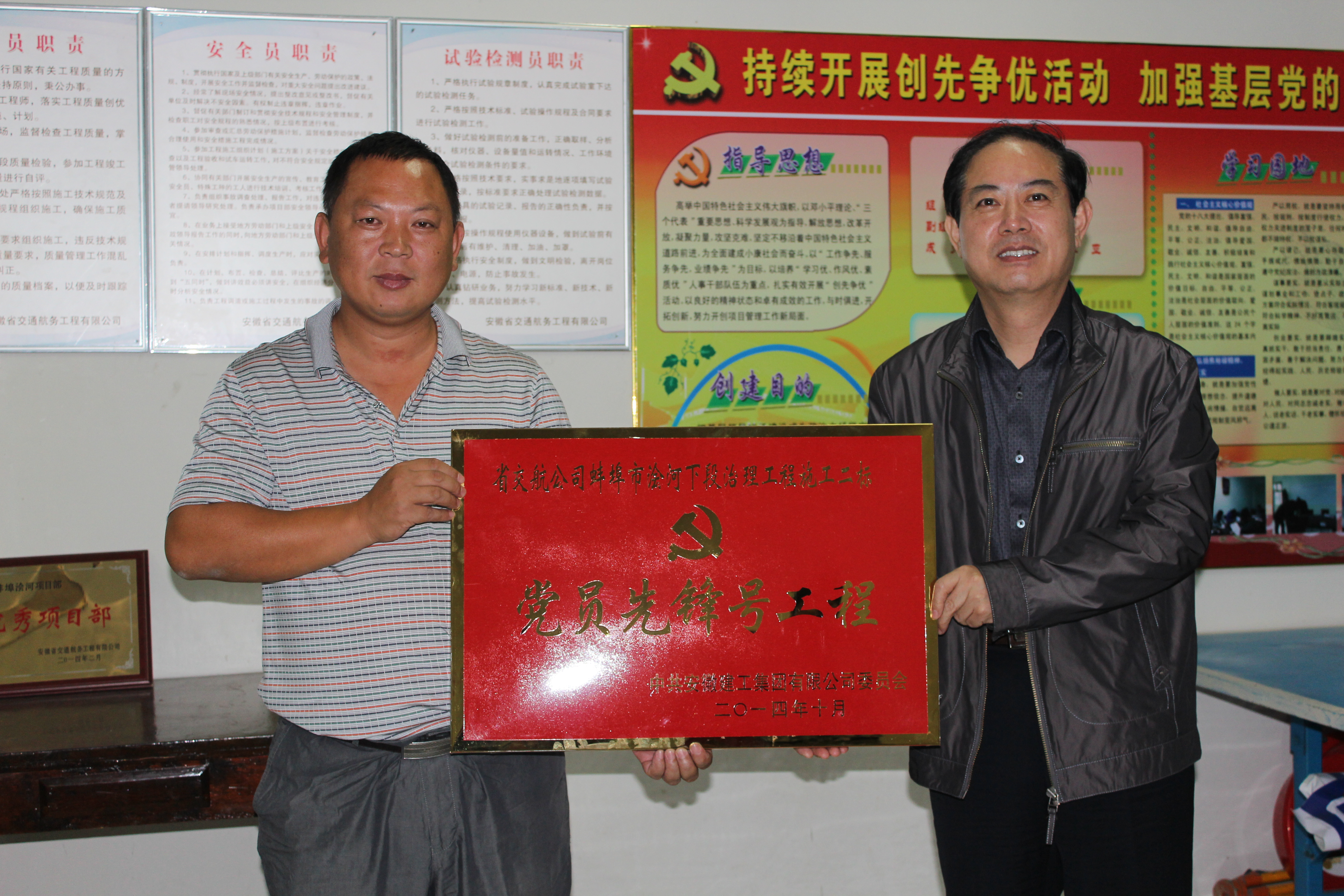 10月13日—16日,集团公司党委副书记、副董事长李长斌赶赴蚌埠、砀山、淮南、六安等地对交航公司和路桥公司申报“集团公司党员先锋号工程”的四个项目进行检检验收并予以授牌。