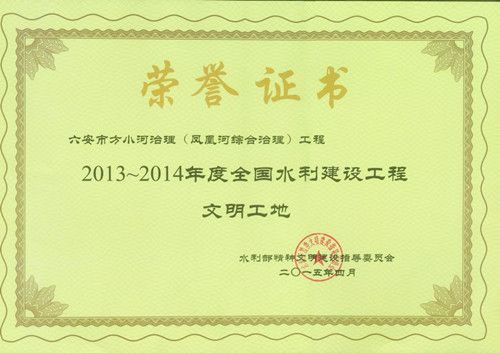 近期,水利部精神文明建设指导委员会通报了全国水利建设工程文明工地评选结果,安徽水利一公司承建的六安市方小河治理(凤凰河综合治理)工程(以下简称凤凰河工程)被评定为“20132014年度全国水利建设工程文明工地”。