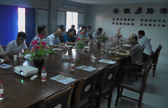 赵时运董事长一行一到项目部,就冒着酷暑直奔现场、亲临一线,详细询问了工程施工进展情况,并重点检察了一线的宁静质量等环节,随后在项目部集会室召开集会。