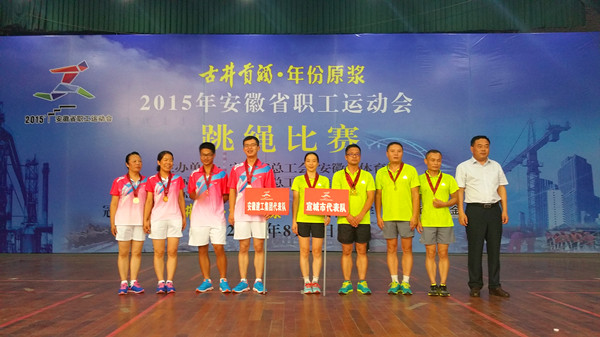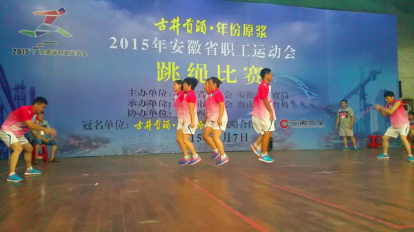8月7日,2015年安徽省职工运动会跳绳角逐在淮南市举行,MG电子代表队8名运发动,齐心协力,顽强拼搏,在4个大项的角逐中,共夺得二项冠军、一项亚军、二个第三名,总结果名列乙组第一,为安徽MG电子争得了荣誉。