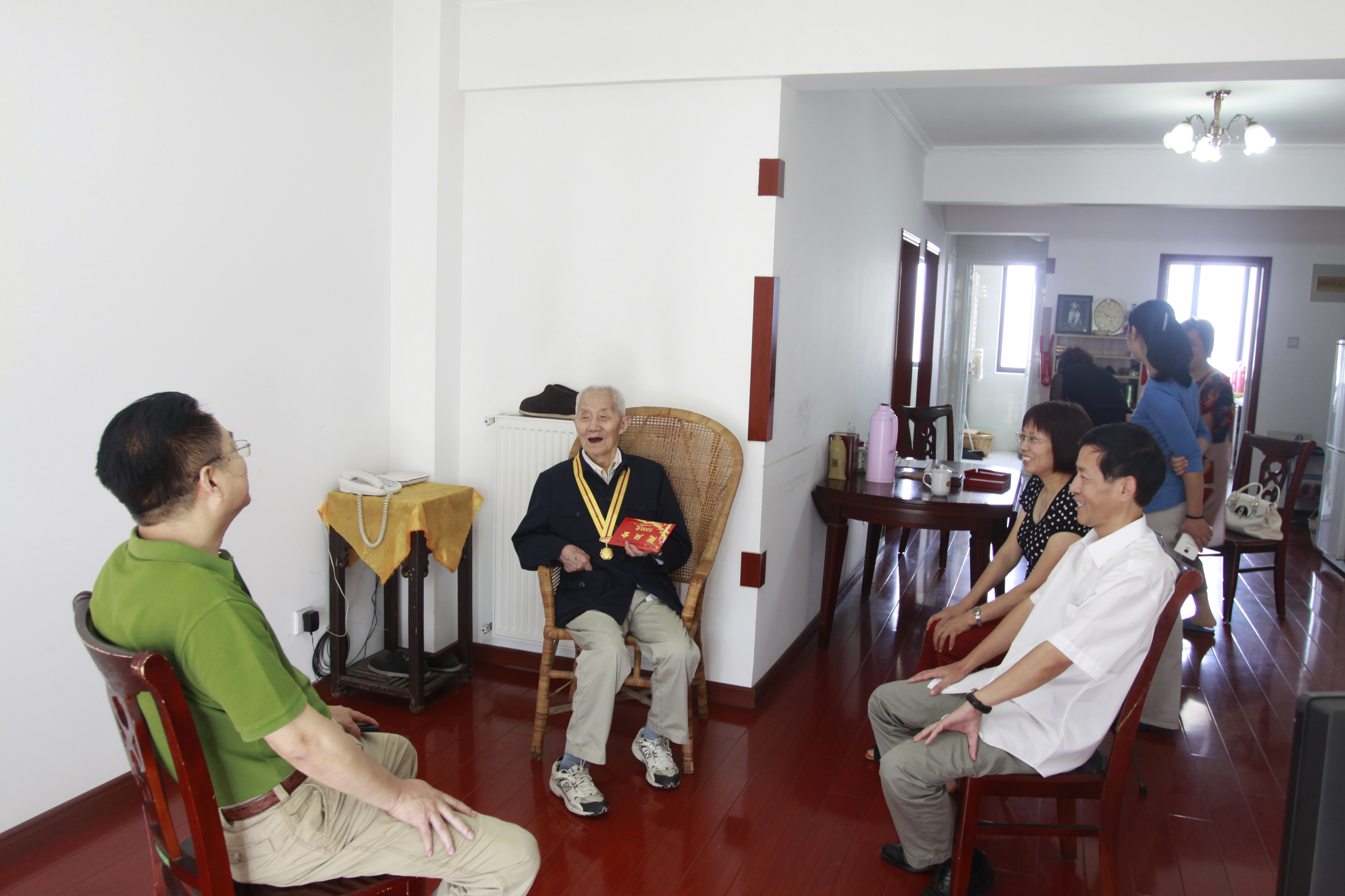 抗战老战士施炳智同志1940年加入新四军,追随步队在淮河两岸抗击日本侵略军,出生入死,保家卫国。1986年从正厅级岗位离休,如今96岁高龄的施老,仍然精神矍铄;抗战老同志孙三川同志一直在敌后做情报事情,机智果敢,临危不惧。 1987年从副厅级岗位离休。孙老今年88岁,仍然身体健康,耳聪目明。