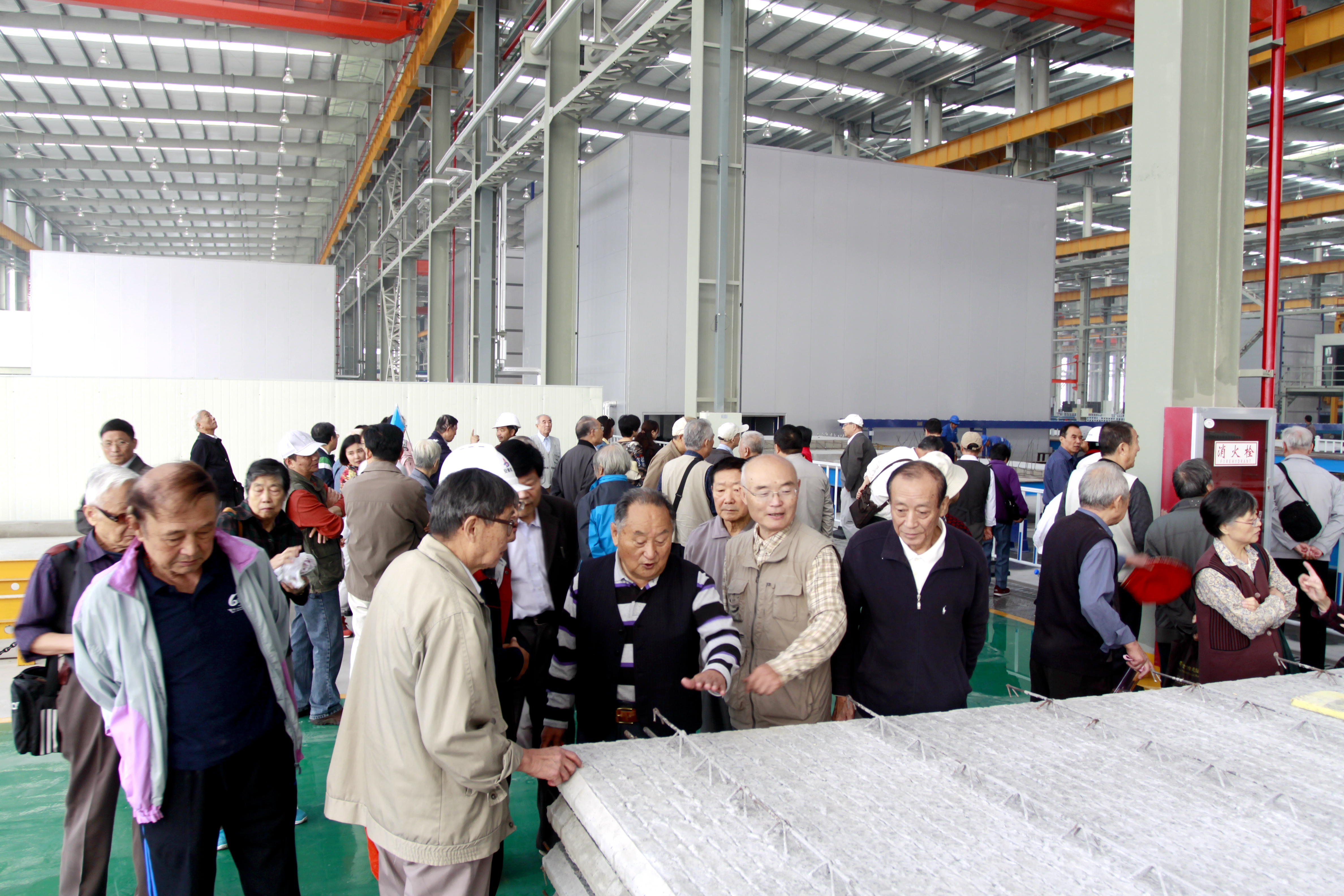 在肥东县安徽MG电子建筑工业化妆配式混凝土预制构件生产基地,老同志们一下车就被宽敞明亮的厂房所吸引。在现场工程师的领导下,循着宁静通道,老同志们面对既熟悉又陌生的事情场景因兴奋而手舞足蹈。各人走走停停,现场交流探讨气氛十分热烈,以前需要几多工人才可以完成一块混凝土预制构件,今天在我们企业现代化的厂房里,陪同种种自动化流水生产线的进进出出,一切都是那么高效快捷,似乎有太多不可思议。高峻的厂房里种种生产设备规整就位,制品半制品码放整齐,车间清洁明亮,厂区类似花园。走出车间,老同志们紧紧握着工业园工程技术人员的手,无声通报力量。