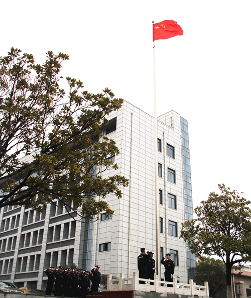 7点30分,在全体师生的注视下,我院国旗护卫队迈着整齐的程序护送国旗来到国旗台。在雄浑嘹亮的国歌声中,升旗手振臂一挥,鲜艳的五星红旗冉冉升起。全院师生面向国旗庄严肃立,行注目礼,心中漾起高尚的爱国之情。