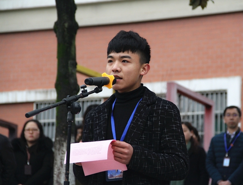 来自成教大专部的王飞同学代表全体学生做了国旗下的演讲,他以“新学期,新起点”为题,招呼同学们在新的学期,做一个懂礼貌、讲礼仪的学生,坚持身体健康,做一个快乐的学生,做一个会相助、锐意进取的学生,学习雷锋艰苦斗争、勤俭节约的精神,积极行动起来,把期望播种在春天的土壤里,齐心协力,迎接更美好的明天。
