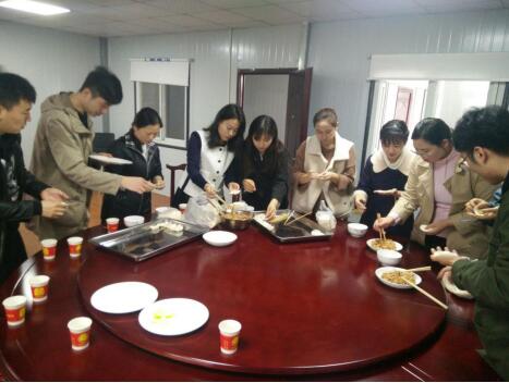 团员们精心挑选馅料、饺皮,充分做好准备事情。洗菜、拌馅、包饺子各个程序井然有序,各人分工明确、紧密配合,有的挑馅,有的抹皮,两手一掐,一个胖嘟嘟的饺子就成型了。有的手忙脚乱,不是馅放多撑破皮,就是包成馄饨效果,各人相互挖苦,随着一声“下锅”,饺子在锅中咕咚咕咚的翻腾,一个个迫缺乏待的浮出水面。形态各异的饺子在各人的期待下出锅了,各人看着自己的劳动结果,脸上洋溢着满足的微笑,食堂内随处萦绕着欢声笑语。