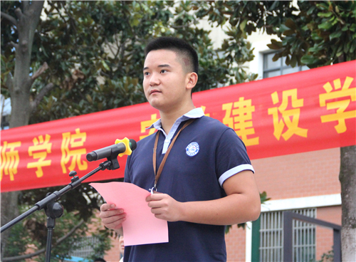 来自工程系杨熙元同学代表全院学生做了国旗下的演讲,他以“学好技术,报效祖国”为题,招呼同学们脚踏实地,认真上好开学第一课;一往无前,追逐心中的梦想,成为能文能武的能工巧匠,牢固树立技术成才的信心和技术报国的决心。