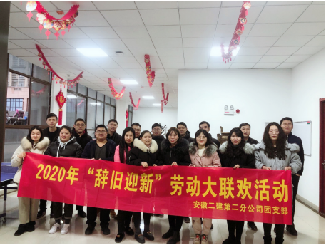1月16日下午,安徽二建二分公司团支部开展“辞旧迎新”劳动大联欢运动,旨在凝聚员工的向心力,弘扬“家”文化,在和谐的气氛中配合营造良好办公情况和新春气氛。