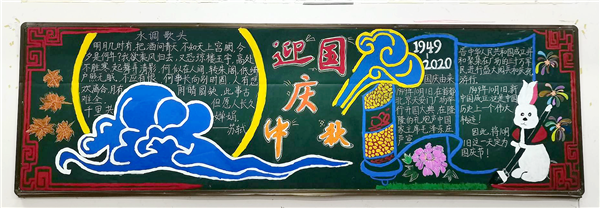 为庆祝伟大的祖国71周年华诞,喜迎古板中秋佳节的到来,培养学生爱国主义情感,弘扬中国古板文化。10月26日,院团委组织五系一部开展以“迎国庆 庆中秋”为主题的黑板报评比运动。