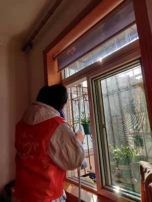 志愿者在得知有位老职工家里有马蜂窝,给其生活带来困扰和宁静隐患后,立即接纳行动,拿起工具对位于衡宇高处的马蜂窝进行快速清除,这一举动让这位老职工倍感温馨。