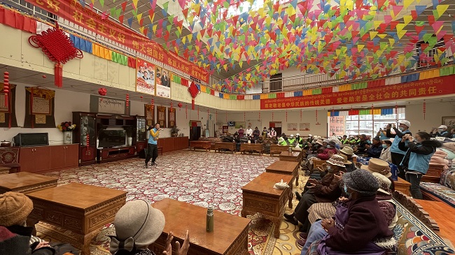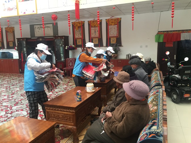 路桥集团西藏新瑞公司青年志愿者一行来到拉萨市社会福利院 ,资助社会福利院开展卫生清理、花坛杂草清除等实践运动 ,为孤寡老人送上保温杯、围巾、棉被、帽子等爱心物资 ,还为他们包水饺、演节目 ,陪老人们一起度过了一个温馨的节日。