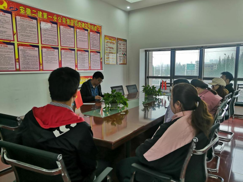 为庆祝中国共产党建立建立100周年,牢固“不忘初心、牢记使命”主题教育结果,响应分公司党支部党史学习教育运动要求,提高青年团员的积极性和创立性。4月7日上午,安徽二建一分公司团支部在党员运动室召开青年座谈会,就青年团员如何开展好党史学习教育、发挥青年生力军作用进行讨论。现场交流气氛热烈,各人各抒己见,畅所欲言,纷纷体现要在党史学习教育中牢记初心使命,切实做到“学党史、悟思想、办实事、开新局”。