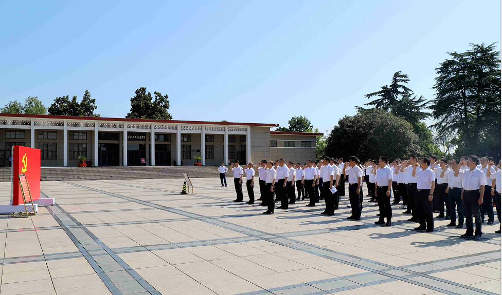 蜀山烈士陵园内,苍松翠柏,郁郁长青。在控股党委书记赵时运的领导下,各人怀着敬重之情从陵园广场拾阶而上,步行到烈士纪念碑前方肃立,向纪念碑敬献花篮。全体党员默哀、追思并深深三鞠躬,表达了对革命先辈的高尚敬意、无限悲哀和深切缅怀。面对党旗,赵时运书记领誓,全体党员庄严宣誓,重温入党誓词。铮铮誓言在广场回荡,激昂雄壮、铿锵有力。