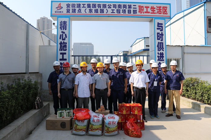 烈日炎炎,骄阳似火。7月26日上午,集团公司党委书记、董事长赵时运在集团工会主席徐晓光等陪同下,赴安建建设和安徽三建施工承建的合肥市高新区南岗复建点项目,亲切慰问高温下奋战在项目一线的全体员工,为他们送去了防暑降温物品。安建建设总经理陈传文、安徽三建董事长左登宏等陪同慰问。