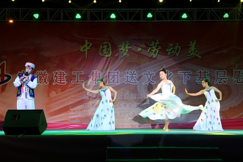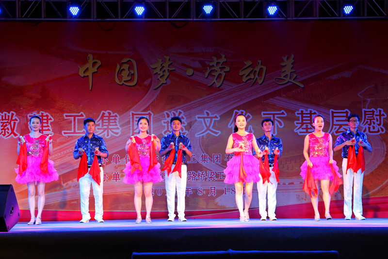 慰问演出在安建建设公司选送的舞蹈《欢喜地跳吧》动感生动的旋律中正式开始,安徽装置公司选送的快板舞蹈《和谐MG电子绘宏图》演出整齐划一,声声竹板,唱出MG电子新气象;由路港公司选送的小品《宁静一家亲》通过诙谐滑稽的语言,在阵阵笑声中,提示了宁静责任意识,给人以启迪;三建公司选送的情景朗诵《劳模风范践真情》,形象展现了甘于贡献、争创一流的劳模精神;建科院选送的现代舞《咱们工人有力量》用艺术的语言,赞美了MG电子人的风范和劳动美。演出中,主持人还邀请现场的工友为观众即兴演唱,赢得了满堂喝彩。演出结束后,观众们还对最受接待的节目进行了现场投票,并进行了现场观众幸运抽奖运动。首场演出获得了协办单位安徽省公路桥梁公司的大力支持。整场慰问演出气氛热烈,文明欢快。
