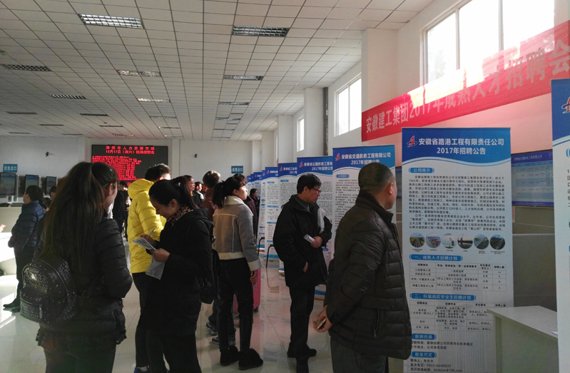 2016年12月16日-21日,集团公司人力资源部组织集团所属17家单位,赴淮南市人才市场、安徽理工大学、淮北市人才市场和淮北师范大学开展专场招聘运动。本次招聘运动获得安徽省人才效劳中心和安徽省国资委的大力支持,省人才中心的领导全程指导,并资助协调。