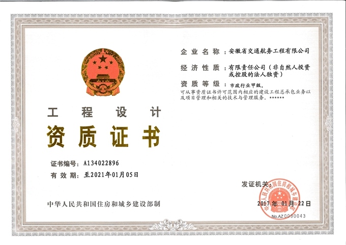 近日,住房和城乡建设部宣布通告,安徽交航乐成获得市政公用工程施工总承包特级资质及市政行业甲级设计资质,成为我省首家省属市政特级资质企业。
