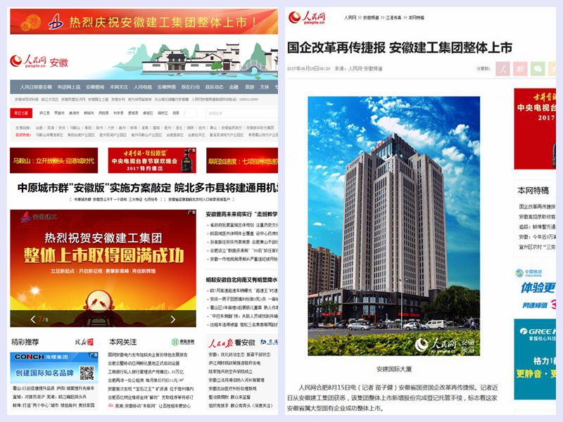 中央驻皖媒体人民网安徽频道,在首页通栏中悬挂整幅祝贺口号“热烈祝贺MG电子整体上市”。在首页要闻区图片新闻栏目以“国企革新再传捷报,MG电子整体上市”为题刊发特稿,从“推进内部整合,全工业链协同优势凸显”、“结构投资业务,转型升级程序加速”、“实施立异驱动,焦点竞争能力显著增强”、“增强企业党建,发挥领导焦点政治焦点作用”等四个方面,系统展示集团近年来革新生长和党的建设新成绩。人民网安徽官方微信对特稿进行精心制作,加入大宗的照片和图表,以图文并茂的形式进行刊发,关注度和转发量很是大。