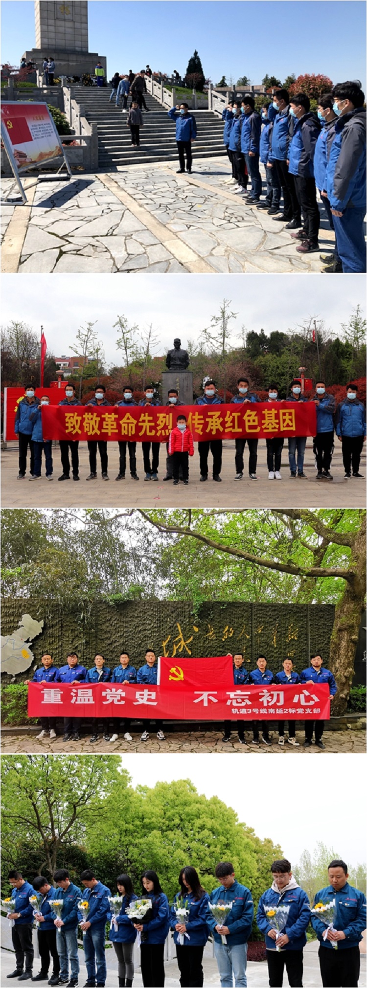 蒙城PPP项目党支部组织党员和职工来到蒙城县革命烈士陵园扫墓祭祀,向革命烈士敬献花篮,表达悲哀;淮北片区党支部组织党员、团员青年和职工瞻仰泗县烈士陵园,铭记历史,致敬革命先烈;合肥轨道交通3号线南延2标项目党支部前往新四军江北指挥部开展党史教育,重温入党誓词,牢记初心使命;引江济淮联合党支部追寻红色足迹,在茶壶山烈士陵园纪念碑前,唱响国歌,静思默哀;流通二环(西南环)项目党支部组织开展“网上祭英烈”运动,宽大党员、团员青年和职工登岸网上纪念馆,缅怀革命先烈,表达对英雄的敬意。