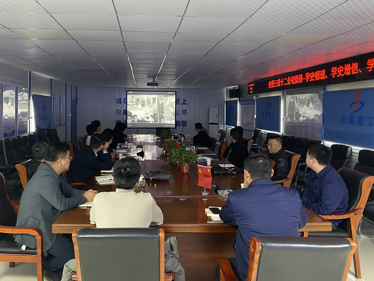 4月6日,十二公司党支部深入肥东振兴EPC项目一线,组织全体党员开展“学党史,忆初心”主题党日运动,支部书记丁玉新讲授了“学史明理、学史增信、学史崇德、学史力行”党史学习专题党课,各人还一起寓目了革命历史题材影片《决胜时刻》。