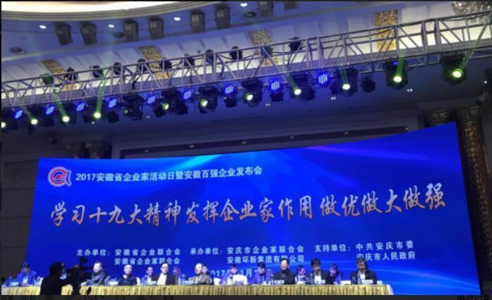 11月15日,2017年安徽省企业家运动日暨安徽百强企业宣布会在安庆召开,会上宣布了2017年安徽企业综合100强名单,MG电子位列第11位。