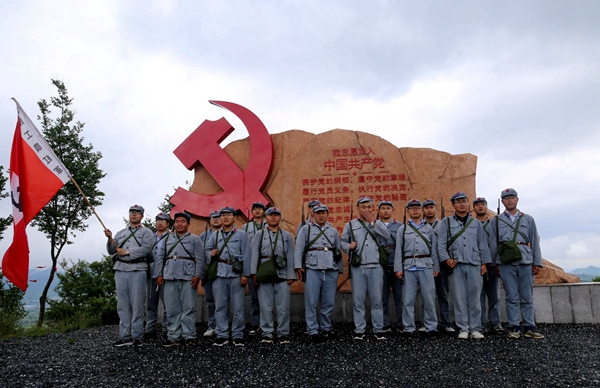 在宁国市口岸红色教育基地,党员和职工代表通过穿一次红军服、升一次五星红旗、唱一首红歌、体验一次行军、重温一次宣誓的“五个一”运动,在具体的实践体验中感悟红军艰苦斗争的精神、坚定攻坚克难的理想信念,教育引导宽大党员职工在后续的项目建设中鼓足劲头,推动项目建设高效推进。