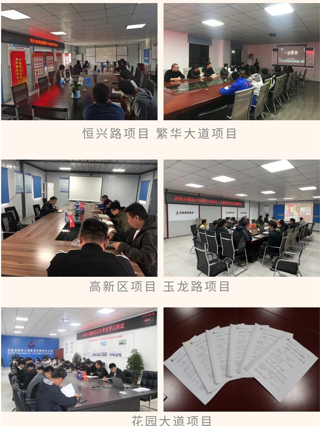 百年筚路蓝缕涤讪立业,百年矢志践行初心使命。为深入落实好党史学习教育,促使宽大员工学习党的庆幸历史与伟大成绩,用党的信仰信念和革命精神凝聚力量,安徽路桥集团一分公司组织所属党员、积极分子、青年团员、职工群众开展党史教育学习会。