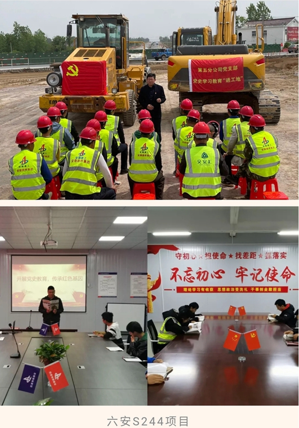 共学党史悟初心,凝聚共识知奋进!今年是中国共产党建立100周年,随着党员群众学党史气氛越发浓烈,学习热情越发高涨,安徽路桥集团五分公司党支部细心策划,开展党史学习教育,并于近日开展党史学习教育“进工地”运动 。