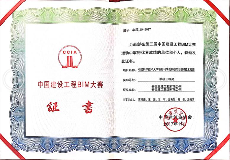 ÈÕǰ£¬ÓÉÖйú½¨ÖþлáÖ÷°ìµÄ¡°½¨É蹤³ÌBIM¼¼Êõ½á¹ûÍÆ¹ãÓ¦ÓþÑé½»Á÷»á¡±ÔÚÏÃÃÅÕÙ¿ª¡£»áÉ϶ԵÚÈý½ìÖйú½¨É蹤³ÌBIM´óÈü»ñ½±µ¥Î»ºÍ¸öÈËÐû²¼ÈÙÓþÖ¤Êé¡£¼¯ÍŹ«Ë¾×éÖ¯°²»Õ·ÇÅÍê³ÉµÄ¡°BIM¼¼ÊõÔÚÌØ´óÐ͸ֹܹ°ÇÅÖеÄ̽Ë÷Ó¦Óá±»ñµÃ¶þµÈ½±£¬×éÖ¯°²»ÕÈý½¨Íê³ÉµÄ¡°Öйú¿ÆÑ§¼¼Êõ´óѧÎïÖÊ¿ÆÑ§½ÌÑÐÂ¥ÏîÄ¿BIM¼¼ÊõÓ¦Óá±»ñµÃÈýµÈ½±¡£
