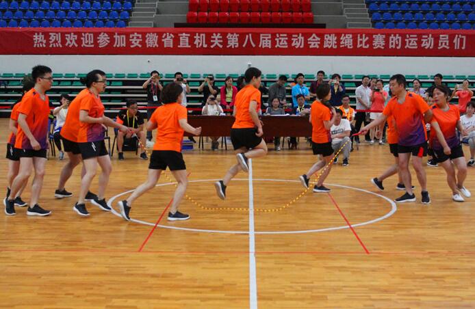 在跳绳角逐中,安徽MG电子代表队发挥团队优势,勇猛拼搏、紧密配合,勇夺10人8字型跳大绳团体、1分钟一带一双人跳(安徽建机公司刘国枝、王带娣)、30秒单摇女子甲组个人(安徽建机公司王带娣)、30秒单摇男子乙组个人(安徽建机公司徐杰)4项冠军;同时,跳绳队还获得2项个人赛第三名,2项个人赛第五名,实现了跳绳项目的大丰收,其中团体赛结果创立了赛会纪录,赢得了观众和各队的一致赞美。