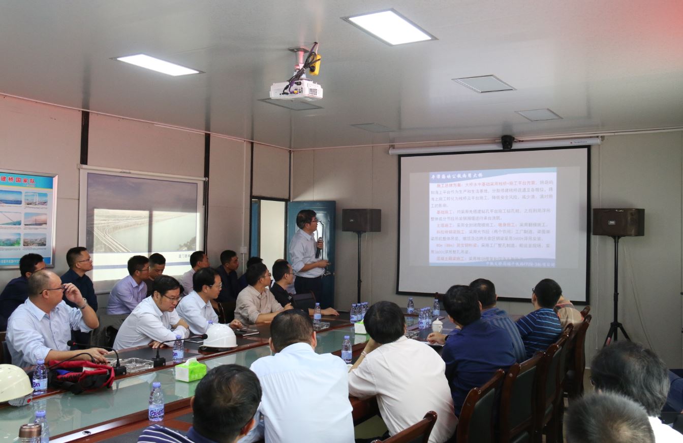 10月25日 ,股份公司副总经理童宗胜、孙学军率队观摩了中铁大桥局承建的平潭海峡公铁大桥项目(福平铁路FPZQ-3标)。中铁大桥局副总工程师兼项目部总工程师王东辉 ,三分部项目经理姚华、项目书记刘运杰、项目总工皮军云等接待了观摩团。