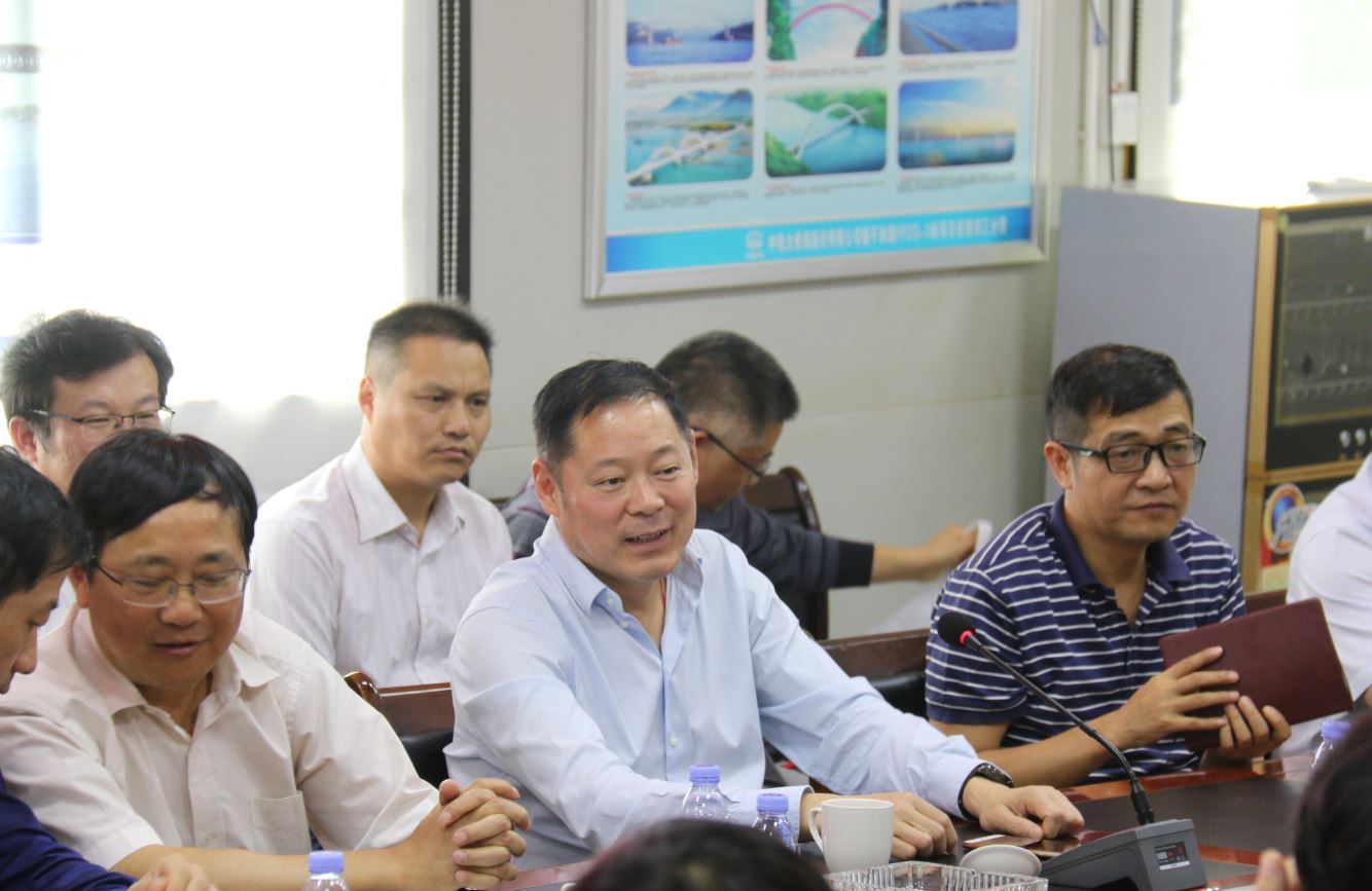随后 ,观摩团搭船来到大桥局福平铁路FPZQ-3标项目部 ,在项目集会室 ,双方举行了观摩交流集会。中铁大桥局副总工程师兼项目总工程师王东辉用视频、PPT形式向观摩团一行讲解了平潭海峡公铁两用大桥项目的工程概况及特点和难点、项目主要立异点、项目施工组织治理、主要施工计划、项目质量宁静治理、四新技术、科研情况及项目最新进展。项目经理姚华等就观摩人员提出的问题一一做了解答 ,并交流了个人体会。