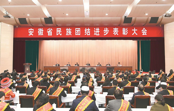 12月14日上午 ,安徽省民族团结进步表扬大会在合肥隆重举行。本报记者 吴文兵 摄