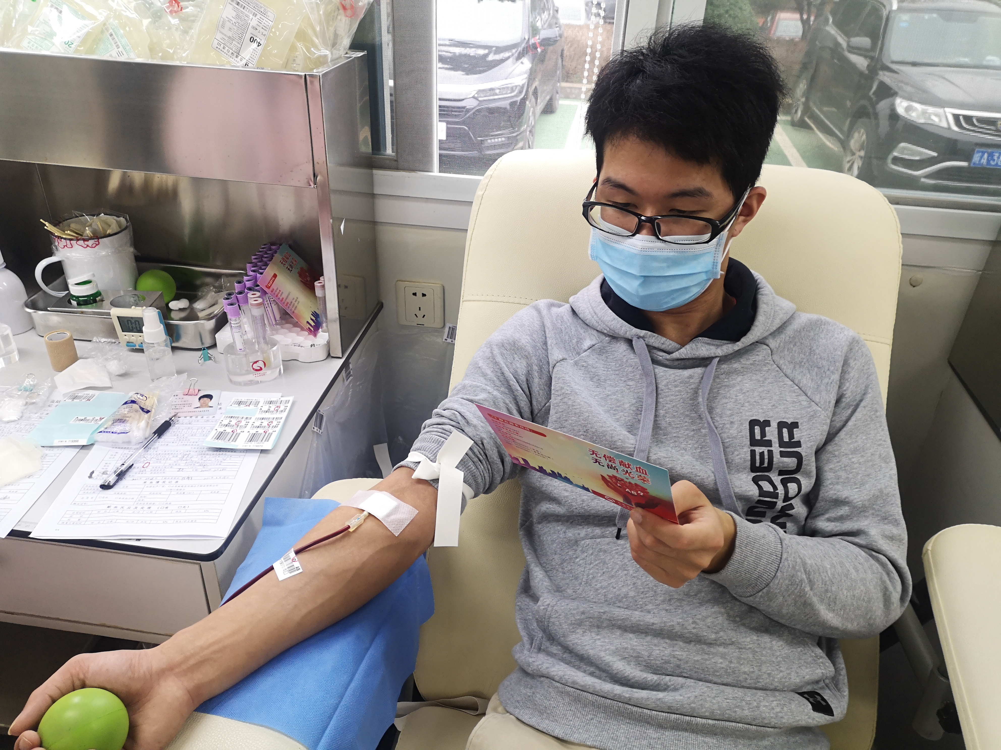 青年职工们在外地广泛开展志愿献爱心运动,有的青年职工自发前往爱心献血点义务献血,有的青年职工前往防疫事情点,为志愿者们送去慰问品。
