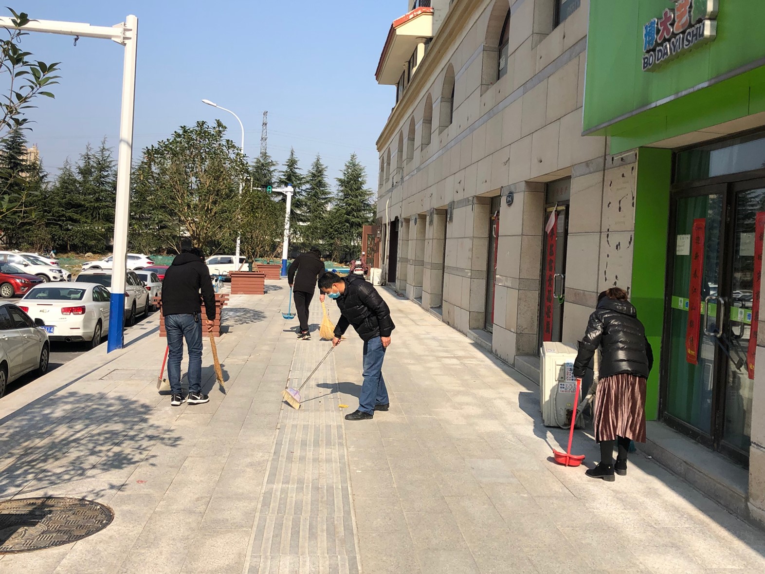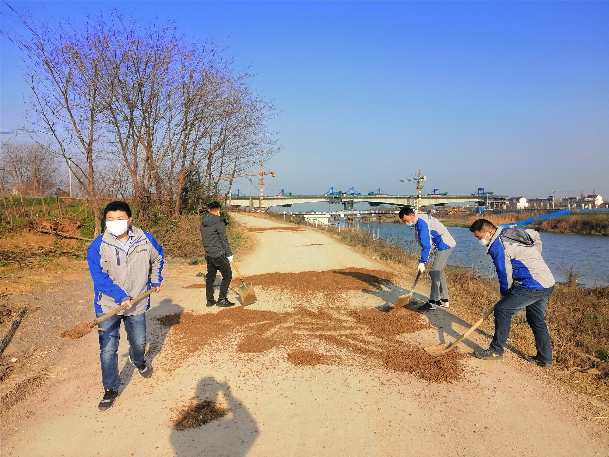 在做好项目内部防疫事情的同时,青年职工们积极与外地社区委联系,担负起工地周边门路清扫、修整等事情,包管周边居民良好的通行情况。