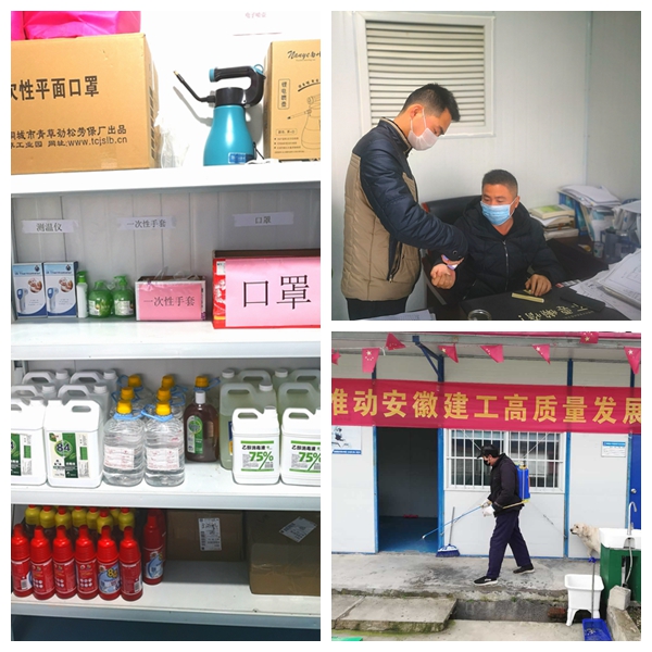 为贯彻上级关于疫情防控的决策安排,切实做好项目疫情防控和复工复产事情,安徽路港S210和城段改建项目部建立疫情防控小组,设立物资储备货仓,准时监测人员体温,做好办公区域消毒,为项目顺利复工复产做好充分准备。