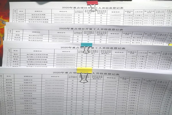 项目部充分意识到疫情防控事情的重要性与紧迫性,提前联系班组人员,要求返工人员提供社区或村镇健康证明、近一个月出行纪录、健康申报表、允许书、疫情防控卡以及安康码等相关资料,一人一档进行备案。为解决疫情期间职工就餐难题,降低熏染危害,项目食堂接纳分餐制,食堂设置洗手消毒区,配备一次性餐盒专用收储垃圾桶。