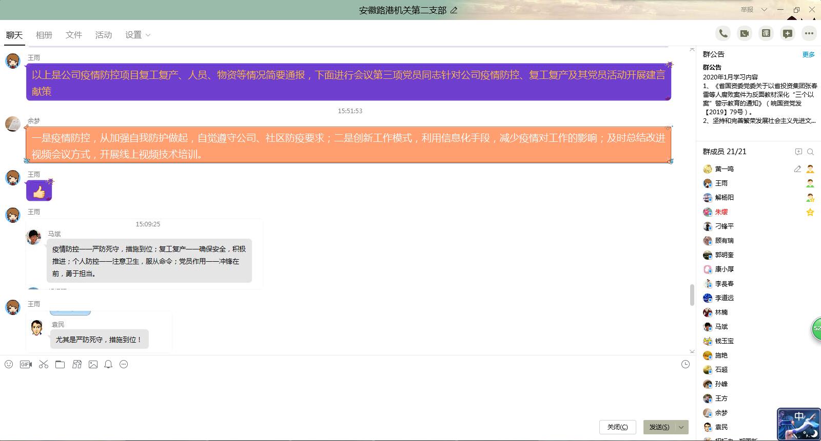 »ú¹ØµÚ¶þµ³Ö§²¿ÕÙ¿ªµ³Ô±´ó»á£¬Îª½µµÍȾÒßΣº¦£¬±¾´Î¼¯»áͨ¹ýQQȺÔÚÏß½»Á÷£¬Ö§²¿µ³Ô±¾Í¹«Ë¾ÒßÇé·À¿Ø¡¢¸´¹¤¸´²ú¼°µ³Ô±Ô˶¯»ý¼«½¨ÑÔÏײߡ£
