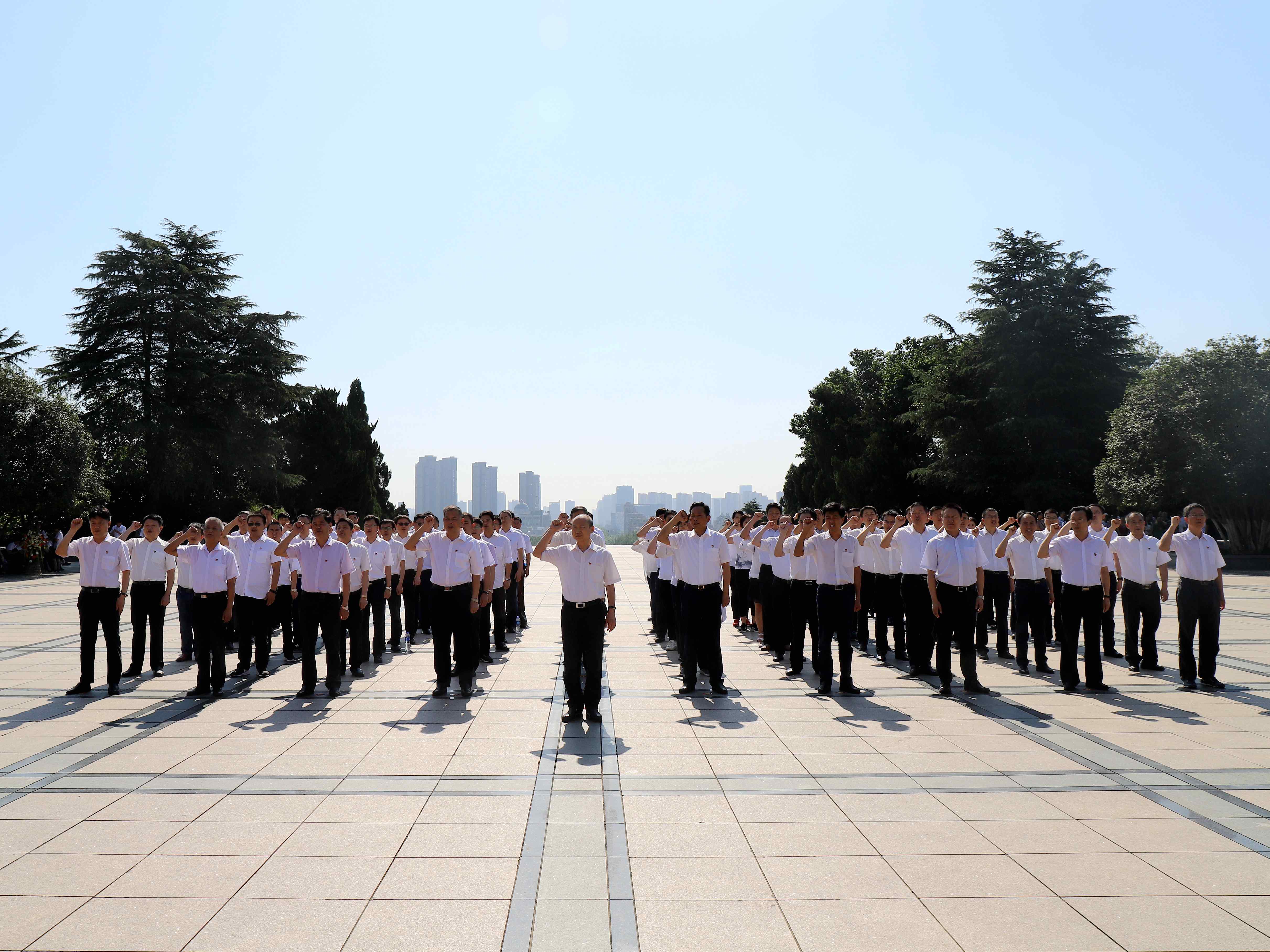 6月23日,控股党委书记赵时运领导控股、股份公司领导班子成员和机关全体党员近百人到蜀山烈士陵园,瞻仰革命先烈,重温入党誓词,接受革命古板教育,以此作为控股党委开展“不忘初心、牢记使命”主题教育的必修课,发动集团上下高质量开展好主题教育。