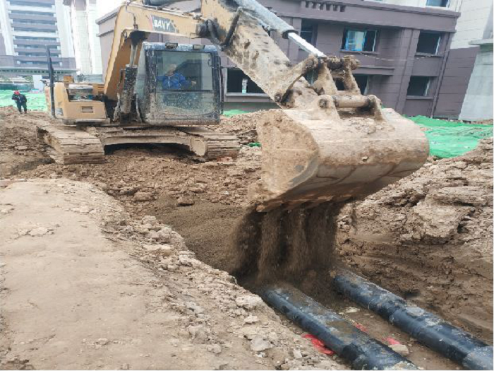 安建汉城源筑书香苑供暖工程项目全体参建人员不畏艰难、逆势而上,始终坚持“白加黑”“5+2”的连续作战模式,治理人员靠前指挥、作业人员并联推进,只见挖掘机迅速掘进、土方车来回穿梭、焊接火花四处飞溅……随处一片大干快干的忙碌景象。截至目前,第一阶段1、2号楼室外热力管网敷设任务已基本完成,比条约划定节点提前20天,获得了业主单位的肯定与赞许。