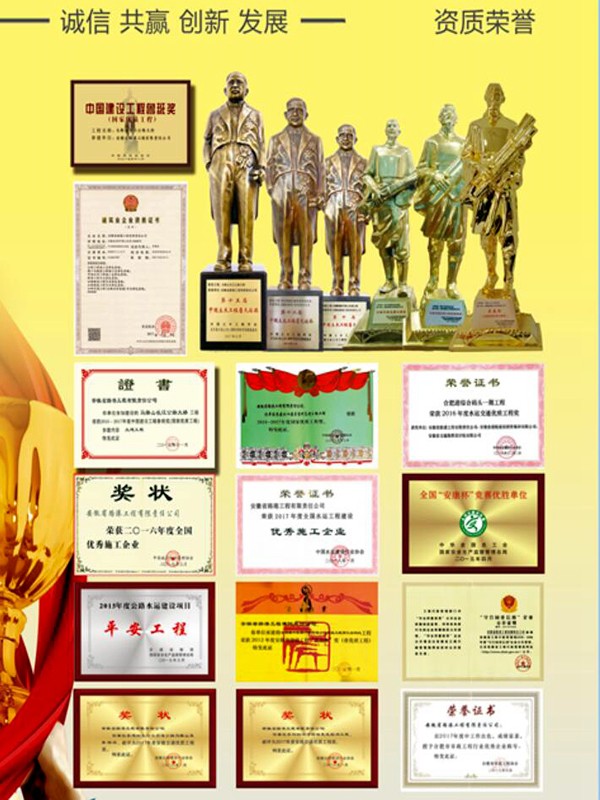 经营资质取得新突破,获口岸与航道施工总承包特级、水运行业工程设计甲级资质,成为全国第十四家、全国省属企业首家拥有港航特级资质的企业;顺利通过国家高新技术企业认定,连续三年享受国家税收减免和资金奖励政策;注册资本金由2.02亿元增加到10.05亿元,加入市场竞争的实力获得了显著增强;积极开拓新业务模式,中标多个PPP项目,提高了投资项目业务占比,实现“投资+施工”经营治理模式转变,业务结构获得优化,抗危害能力显著增强;项目获奖情况硕果累累,共获鲁班奖1项,詹天佑奖2项,李春奖(公路交通优质工程奖)2项,全国水运优质工程奖2项,安徽省交通工程优质奖9项,黄山杯6项。