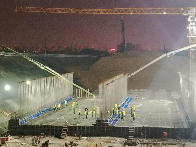 本次隧道主体首块底板混凝土浇筑共计2200余方 。3日早上6时许,项目部施工员、宁静员、质料员、试验员均已到位,作交底、查宁静、收质料、调配比,浇筑前各项准备事情井然有序 。浇筑历程中,项目施工员全程旁站,控制混凝土每层浇筑厚度,并确保每个结构部位振捣到位;试验员对加入的每车混凝土均进行坍落度试验,严控混凝土质量 。