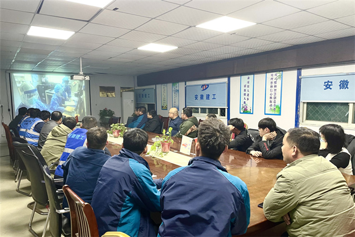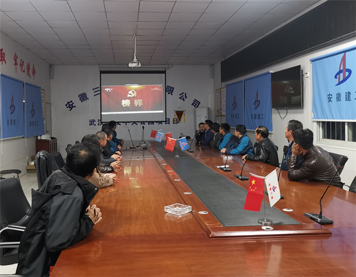 在六安第一中学扩建项目集会室,当天晚上加入项目建设的四公司、装置公司、门窗公司联合组织项目党员及治理人员集中寓目专题片。越日一早,装饰也组织六安一中项目参战治理人员集中收看专题片,罗致模范力量。