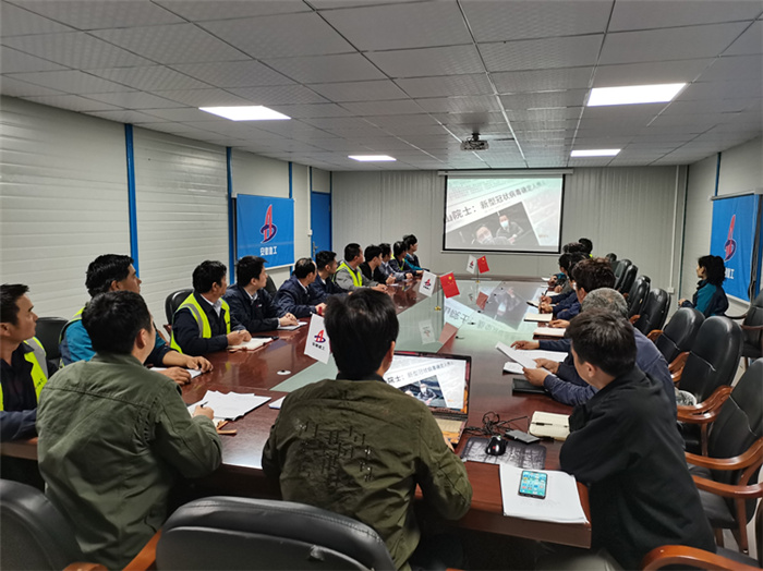 基础公司参建雄安新区容西片区B3标段桩基支护项目部职工在宿舍集中寓目《模范5》。